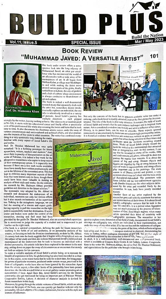 Muhammad Javed has written several research-based articles on art and artists and is known as an acclaimed writer. Also, he is famous for his valuable contribution to promote appreciation of art and literature.