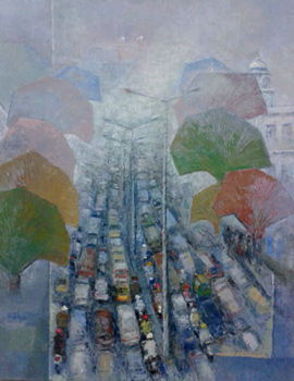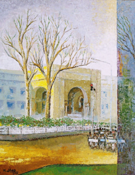 He created his individual idiom after exploring ideology of modern art and not only painted city heritage, but also delineated socio-economic, cultural and political subjects. Besides, he did innovative artworks with charcoal to document artistic travelogue of different countries. Similarly, he explored new dimensions in modern Islamic calligraphic paintings and introduced unique style.