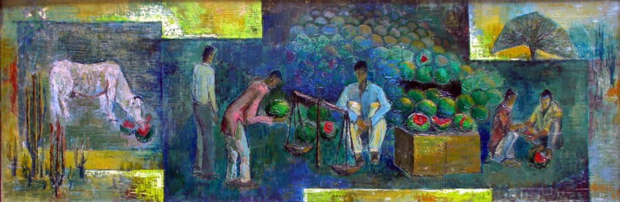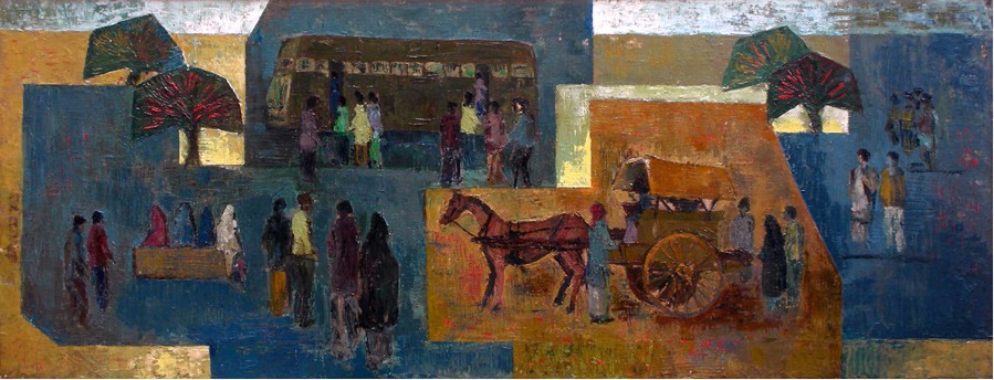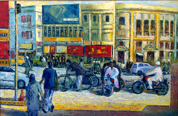 on Shahrah-e-Quaid-e-Azam in 2005, oil on canvas, palette knife